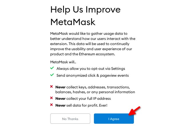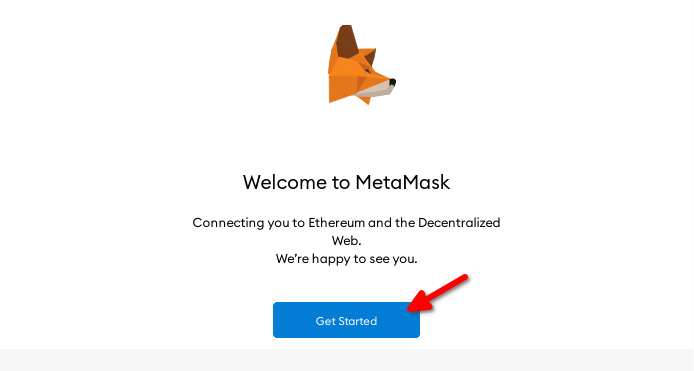 Once you have installed Metamask, click on the Metamask icon in your browser’s toolbar to open the app. Then, click on “Get Started.”
